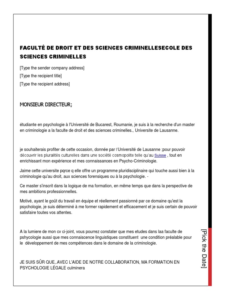 Exemple Lettre De Motivation Suisse Pdf. Je me permets de vous contacter suite à la découverte de votre offre d'emploi au poste de préciser, dans votre entreprise nom. Les recruteurs suisses apprécient les candidats pertinents et francs.